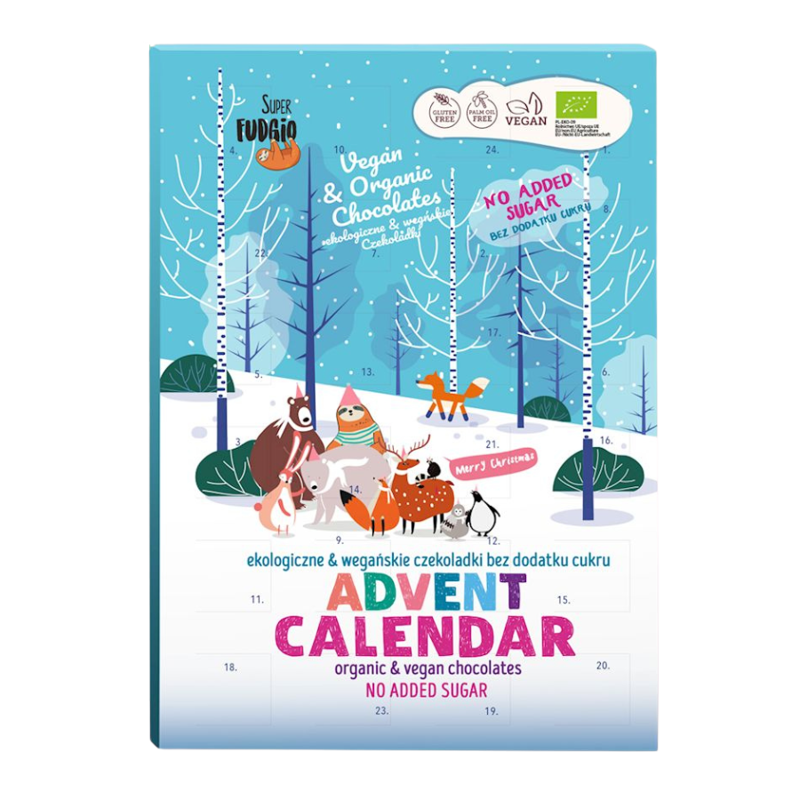 Ekologiškas Advento kalendorius su kokosiniu šokoladu, be glitimo, be pridėtinio cukraus | Super Fudgio (100 g)