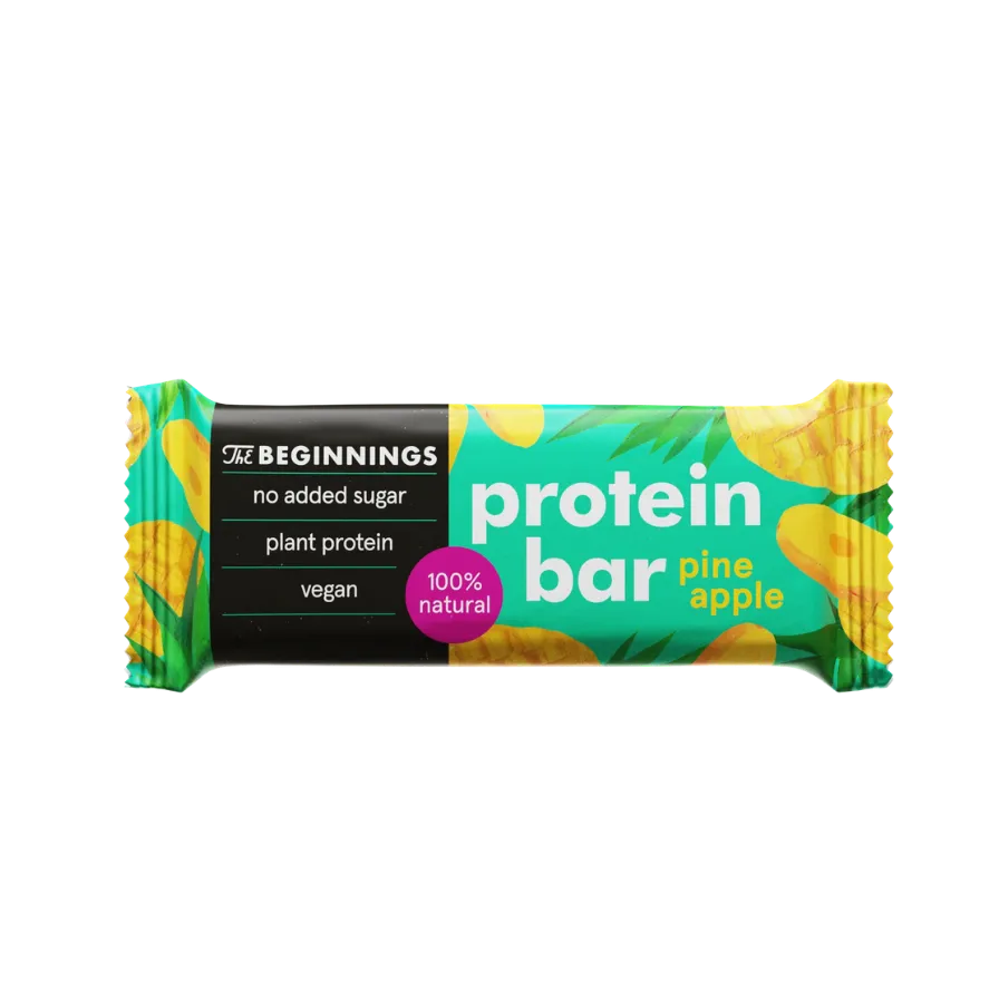 | Sudedamosios dalys | Migdolai, džiovinti ananasai (19%), anakardžių riešutai, džiovinti abrikosai, avižiniai dribsniai be glitimo, pasiflorų sulčių koncentratas, ananasų sulčių koncentratas, žirnių baltymai, ispaninio šalavijo (chia) sėklos, kakavos sviestas, šermukšnių ekstraktas, rozmarinų ekstraktas. |