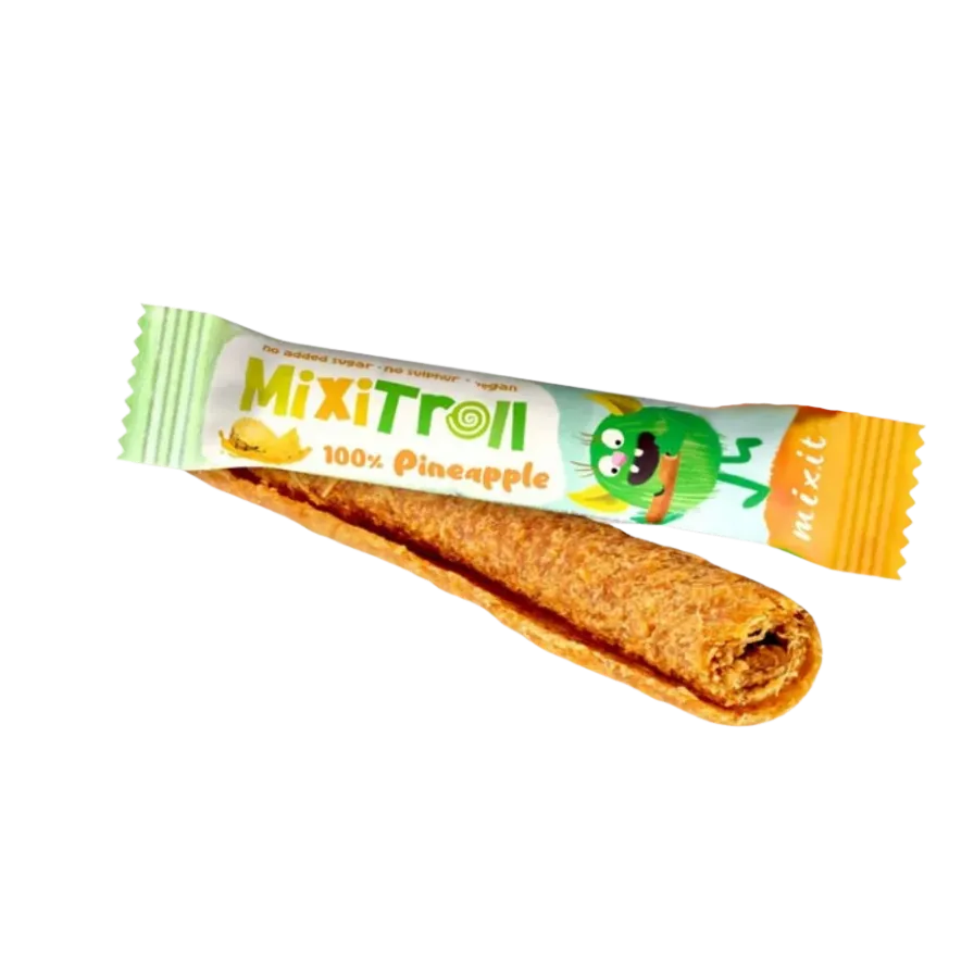 „MixiTroll“ ananasų suktinukas – 100 % iš šviežių ananasų pagamintas natūralus užkandis be pridėtinio cukraus, dažiklių ar konservantų. Saldus, egzotiškas skonis patogioje formoje – puikiai tinka kelionėms, darbui, mokyklai ar pasivaikščiojimams.