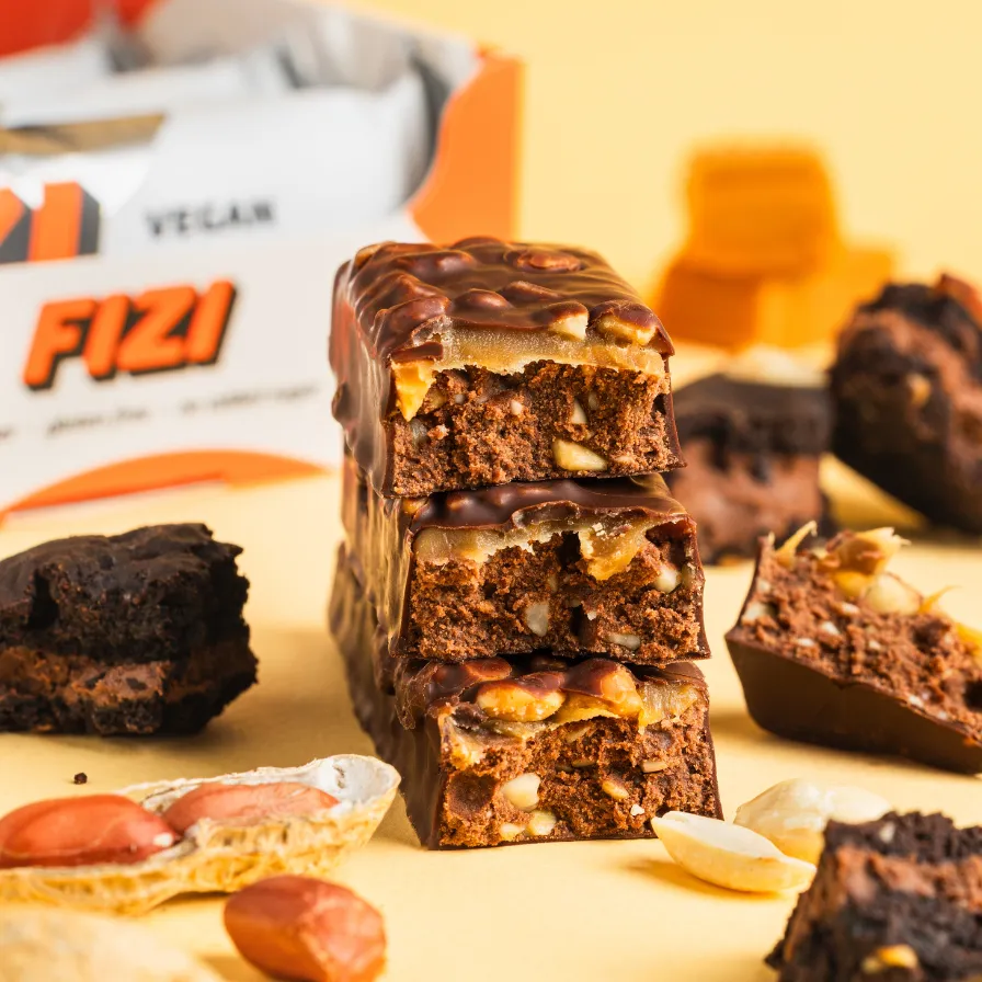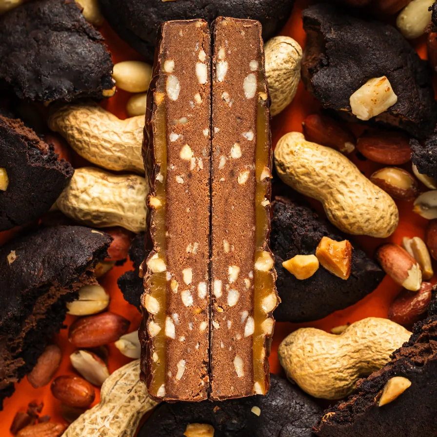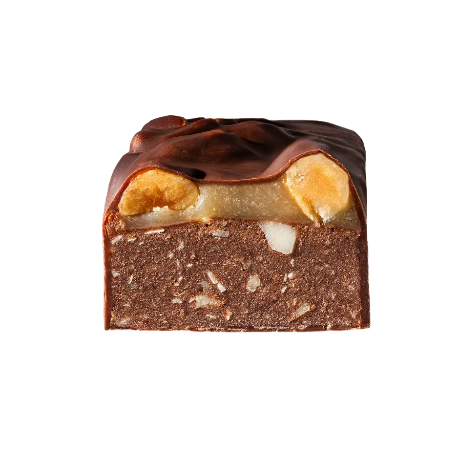| Sudedamosios dalys | žemės riešutai (22,5%), karamelės skonio įdaras (17,8%) (kokosų ekstaktas, užpildas: polidekstrozė, saldiklis: izomaltas, tapiokos skaidulos, saldiklis: eritritolism ryžių krakmolas, saldiklis: stevijos ekstaktas, natūralus aromatas), glajus (12,5%) (saldiklis: maltitolis, kokosų aliejus, kakavos sviestas, mažo riebumo kakavos milteliai, emulsiklis: sojų lecitinas, natūralus vanilės aromatas), žirnių baltymų izoliatas (8,8%), tapijokos skaidulos, užpildas: polidekstrozė, ryžių baltymai (6%), saldiklis: eritritolis, kakavos milteliai, šokoladas be cukraus (kakavos masė, saldiklis: maltitolis, kakavos sviestas, mažo riebumo kakavos milteliai, emulsiklis: sojų lecitinas, natūralus vanilės aromatas(, rožinė druska, emulsiklis: saulėgrąžų lecitinas. |