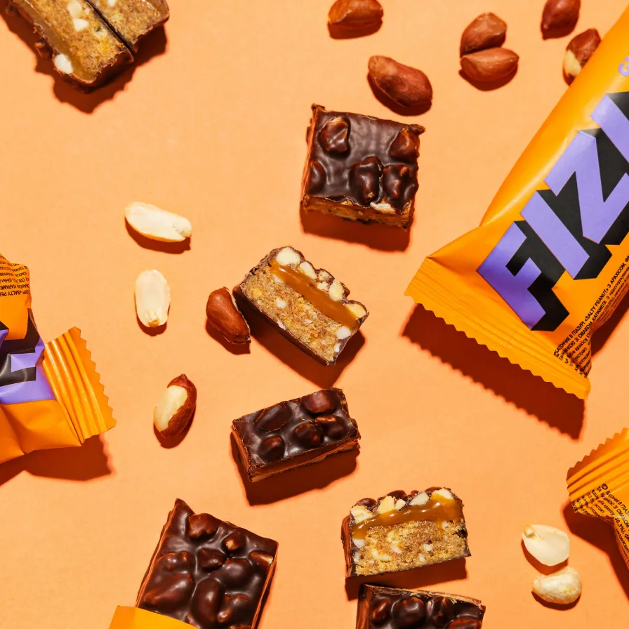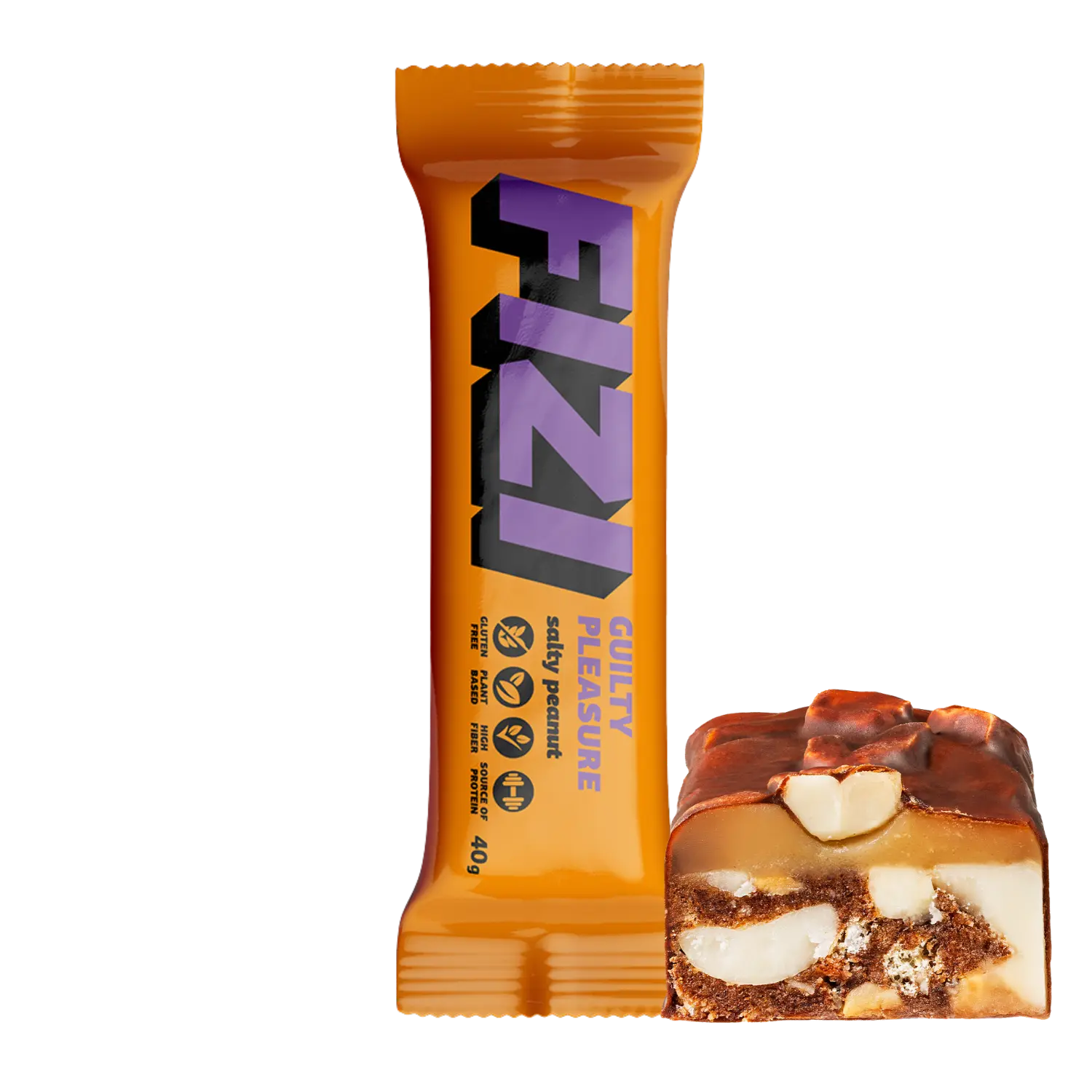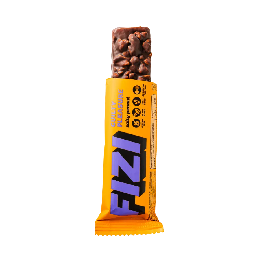 FIZI batonėlis kurio vieno gali nepakakti. Žemės riešutai, karamelė, šokolado sluoknis ir traškūs rutuliukai, tai FIZI „SALTY PEANUT” batonėlis.