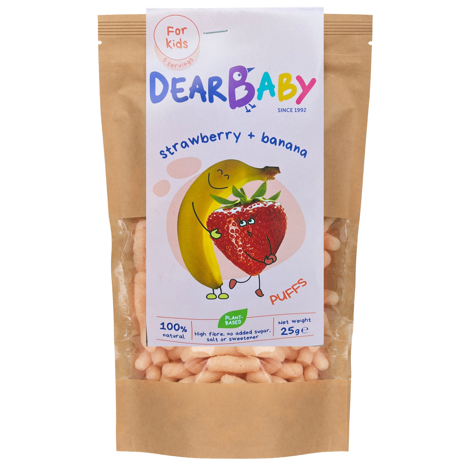 Braškių ir bananų skonio užkandis, be pridėtinio cukraus | Dear baby (25 g)