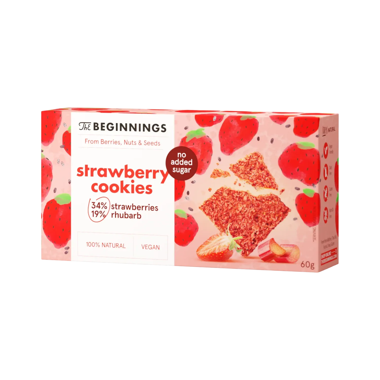 RAW braškių ir rabarbarų sausainiai – ypatingas ir novatoriškas skanėstas.