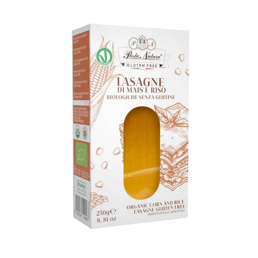 „Pasta Natura“ ekologiška kukurūzų ir ryžių lazanija be glitimo sukurta kaip maistinga, lengva ir subalansuota alternatyva klasikiniam itališkam patiekalui. Idealiai tinka sergantiems celiakija ir netoleruojantiems glitimo, ji išlaiko savo skonį, tekstūrą ir gaminimo savybes, be jokių kompromisų paversdama tradicinės itališkos lazanijos malonumą.