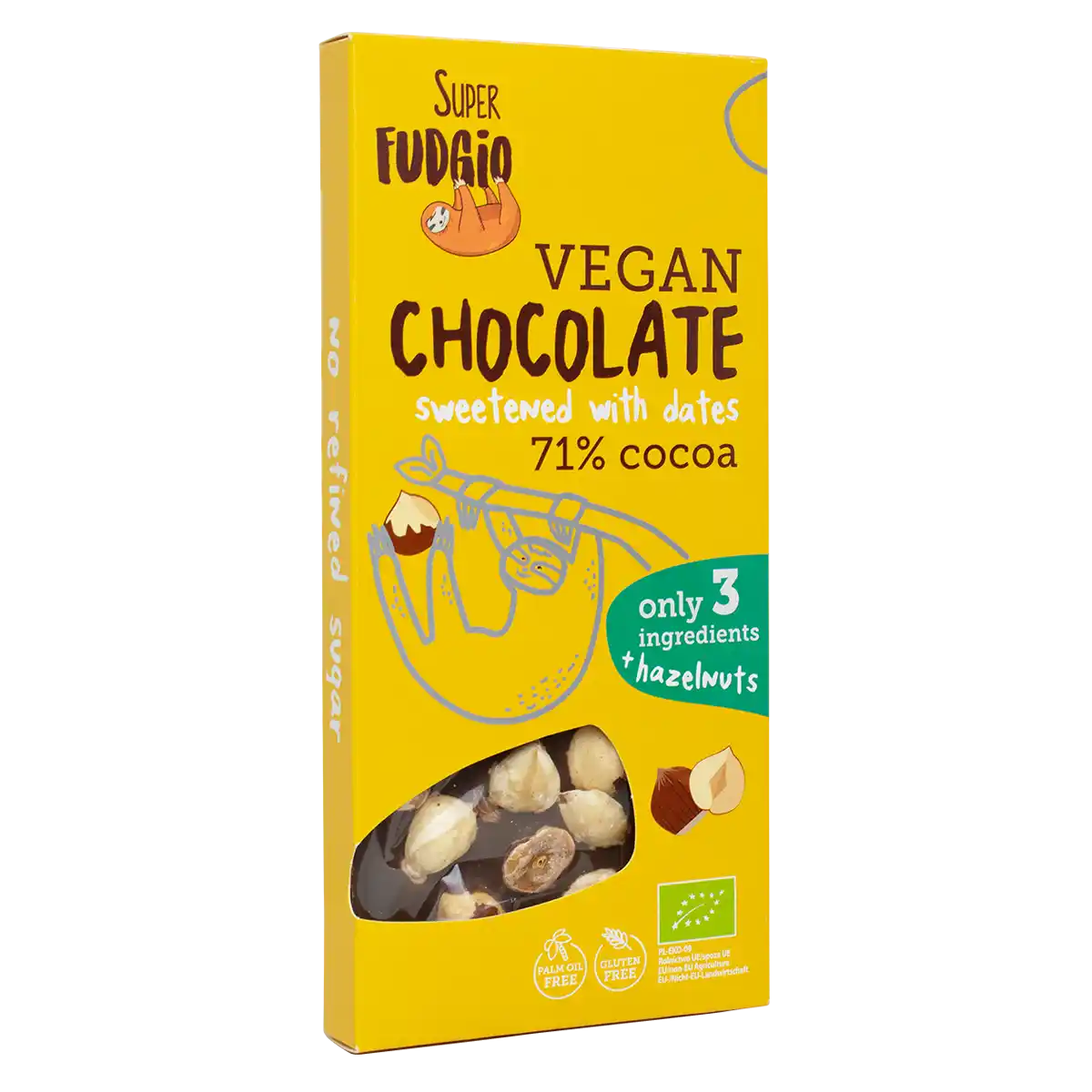 Veganiškas šokoladinis saldainis su datulėmis ir lazdyno riešutais – tai tobulas skonio ir gerovės derinys. Pagamintas tik iš trijų ingredientų: kakavos minkštimo, datulių miltelių ir kakavos aliejaus, visi jie užauginti ekologiškai. Šokoladas papildytas sveikais lazdyno riešutais, todėl tai sveikesnė ir skanesnė alternatyva tradiciniam šokoladui. Jis ne tik išskirtinio skonio, bet ir aprūpina vertingais mineralais. Atraskite natūralų saldumą, leiskite jam pakelti nuotaiką ir suteikti energijos, mėgaudamiesi saldžiu gamtos skoniu.