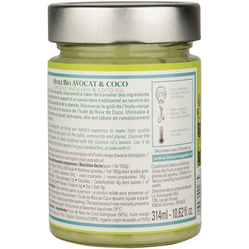 Atraskite harmoningą skonio ir tekstūros derinį – švelnus avokadų aliejus susilieja su kremiška kokosų aliejaus konsistencija. Šis universalus produktas praturtins jūsų virtuvę: tinka tiek kepimui ir troškinimui, tiek naudoti šaltuose patiekaluose ar tepti vietoje sviesto. Natūrali sudėtis leidžia mėgautis abiejų vaisių teikiama nauda kasdien. Be to, aliejus puikiai tinka ir grožio ritualams – maitina, minkština bei puoselėja plaukus ir odą.
