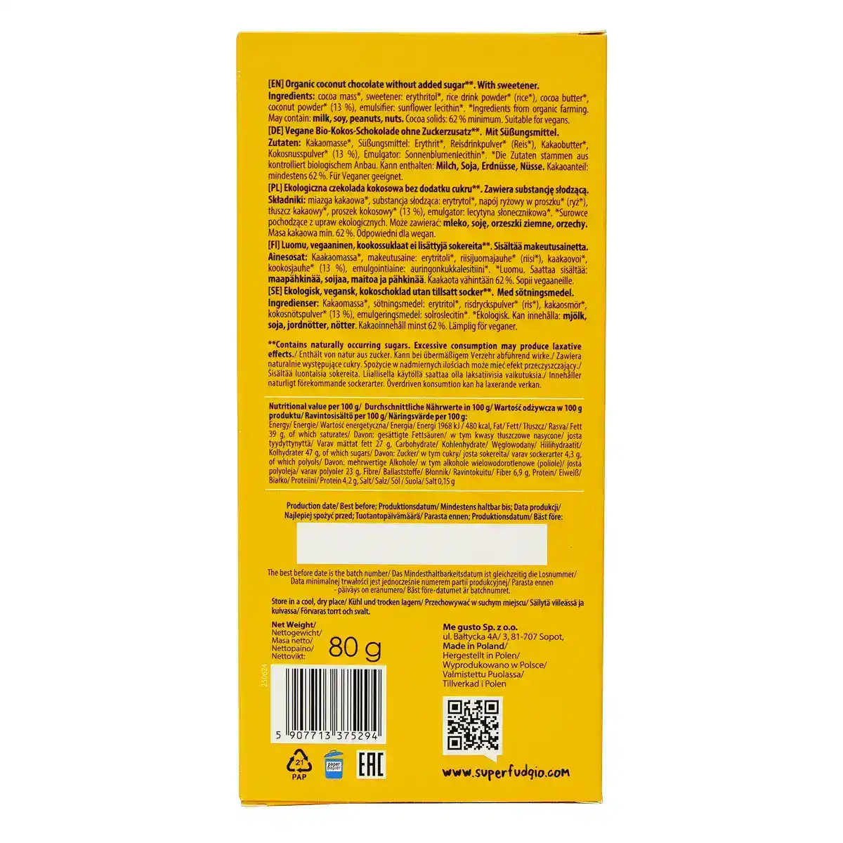 Ekologiškas kokosų šokoladas be pridėtinio cukraus, be glitimo | Super Fudgio 80g