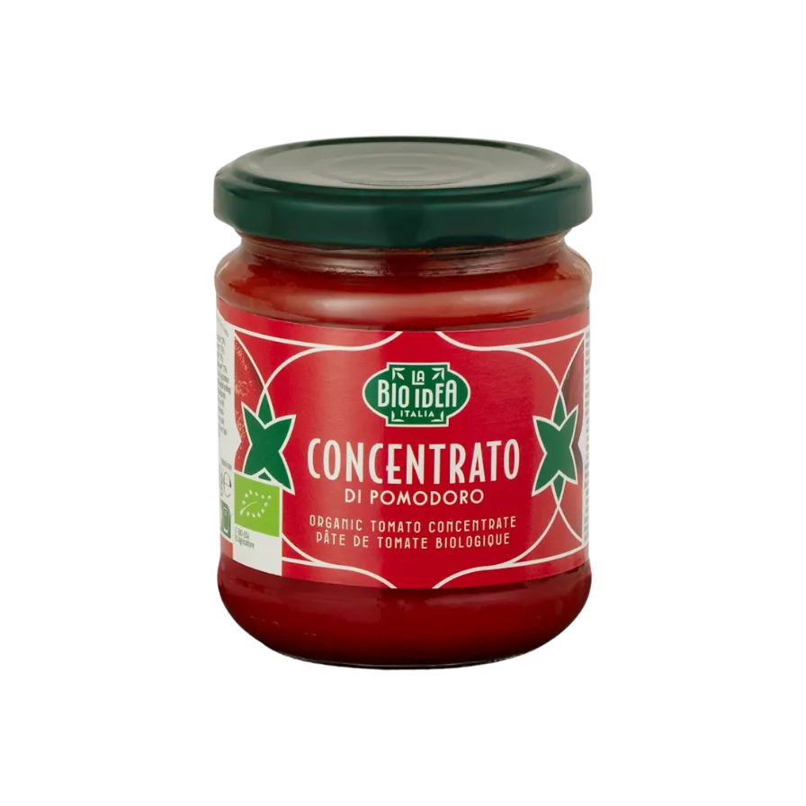 Ekologiškas 22 % pomidorų koncentratas – natūralaus ir intensyvaus skonio pomidorų tyrės pasta, pagaminta tik iš sertifikuotų ekologinių pomidorų be cukraus ir dirbtinių priedų. Puikiai tinka kaip gardus pagrindas padažams, sriuboms, troškiniams ar picos užpilui, suteikiantis patiekalams sodrų skonį ir ryškią spalvą. Be glitimo, veganiškas ir vegetariškas.