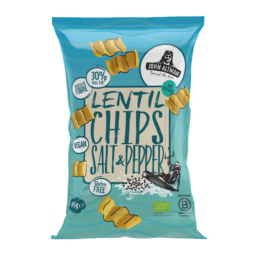 Ekologiški lęšių traškučiai su druska ir juodaisiais pipirais, be glitimo | JOHN ALTMAN (75 g)