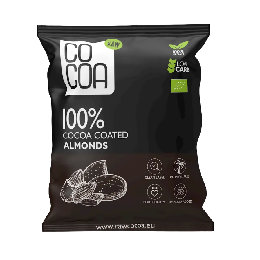 COCOA ekologiški migdolai su kakava – užkandis, kurį patogu turėti su savimi.