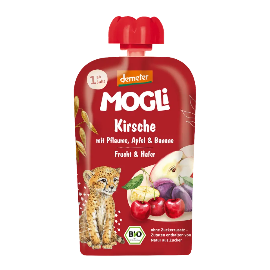 Dėmesio, vyšnių mėgėjai! „Mogli Cherry“ – tai užkandis, kupinas vaisių skonio! Sultinga vyšnia dera su sultinga slyva, saldžiu obuoliu ir kreminiu bananu. Avižiniai dribsniai užbaigia skonių įvairovę.