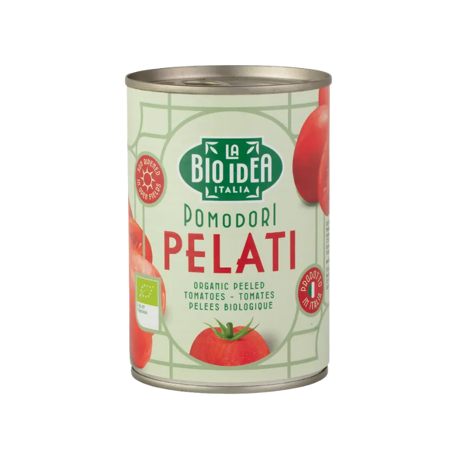 La Bio Idea ekologiški pomidorai – tai visiškai nulupti, ekologiški pomidorai savo sultyse, puikiai tinkantys įvairiems patiekalams.