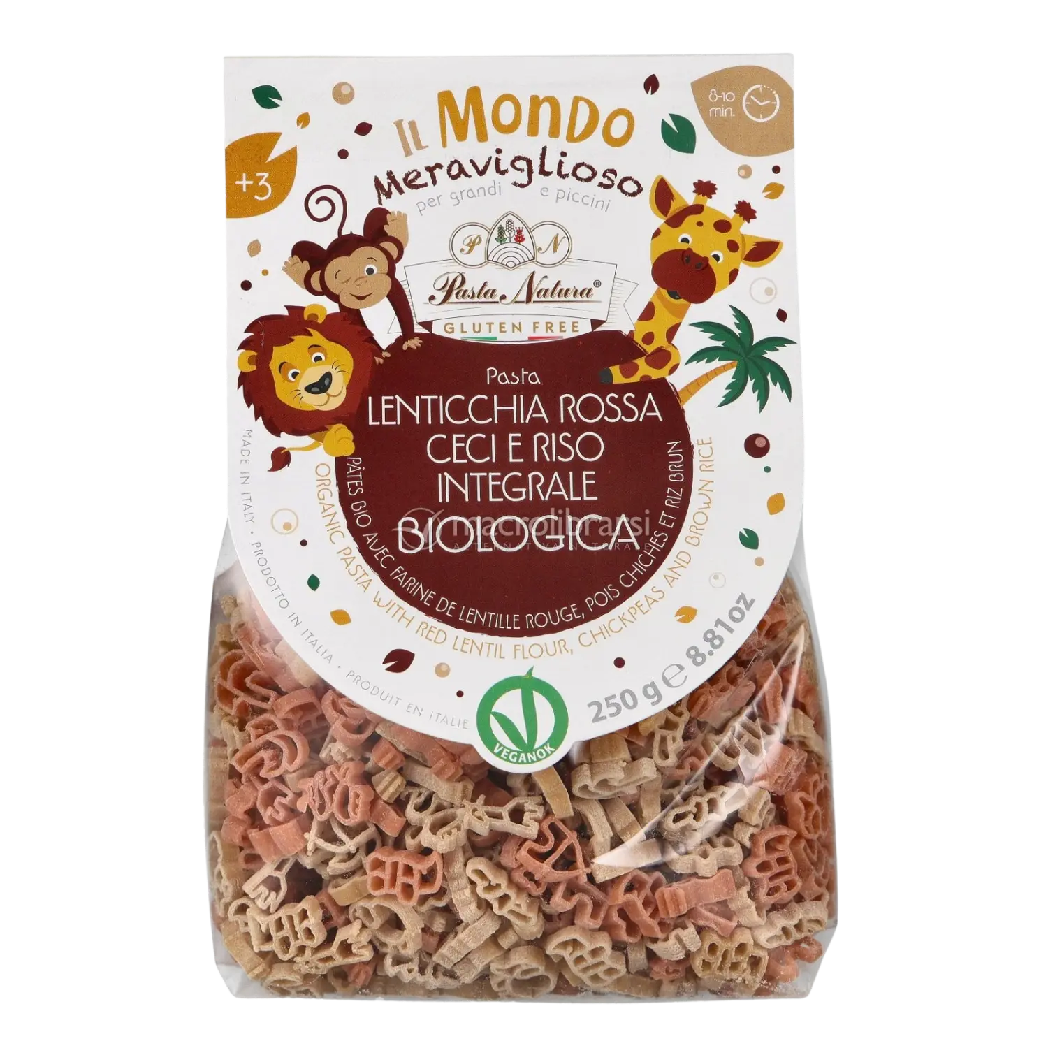 Pasta Natura ekologiški raudonųjų lęšių, avinžirnių ir pilno grūdo ryžių makaronai vaikams SAVANA – puikus pasirinkimas pagrindiniam patiekalui ar naudojant kaip garnyrą.