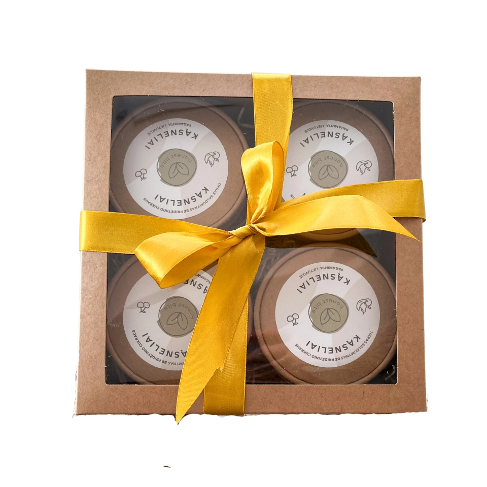Keturių Honestbite kąsnelių pakuočių rinkinys supakuotas į dėžutę ir perrištas atlasine juostele – puiki dovana kiekvienam! Šio rinkinio pagalba galėsite vienu metu išragauti visų skonių kąsnelius.