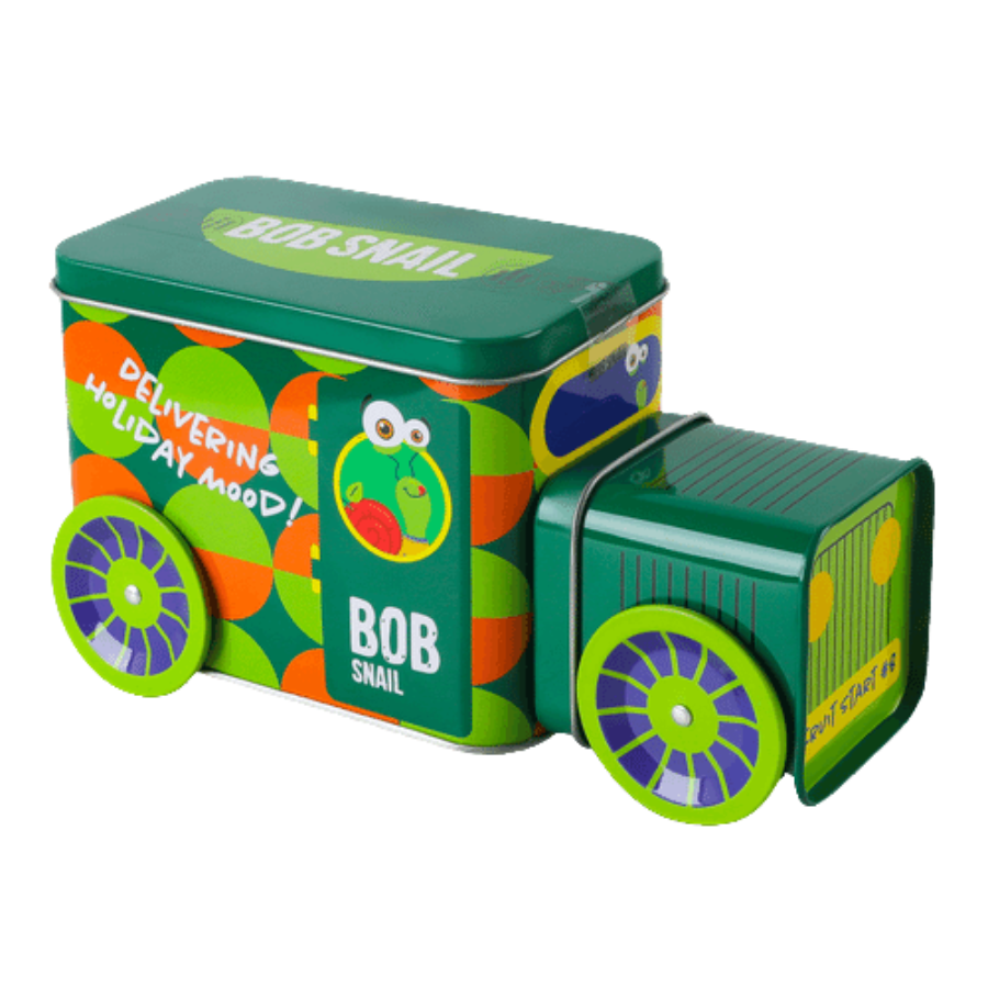 Ši spalvinga skardinė dėžutė pripildyta populiariausių skanėstų, taip pat yra žaislas/figūrėlė ir lipdukai. Šis rinkinys pradžiugins ne tik Bobo Sraigės gerbėjus.