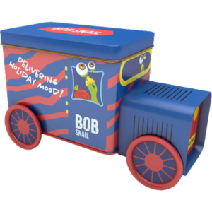Ši spalvinga skardinė dėžutė pripildyta populiariausių skanėstų, taip pat yra žaislas/figūrėlė ir lipdukai. Šis rinkinys pradžiugins ne tik Bobo Sraigės gerbėjus.